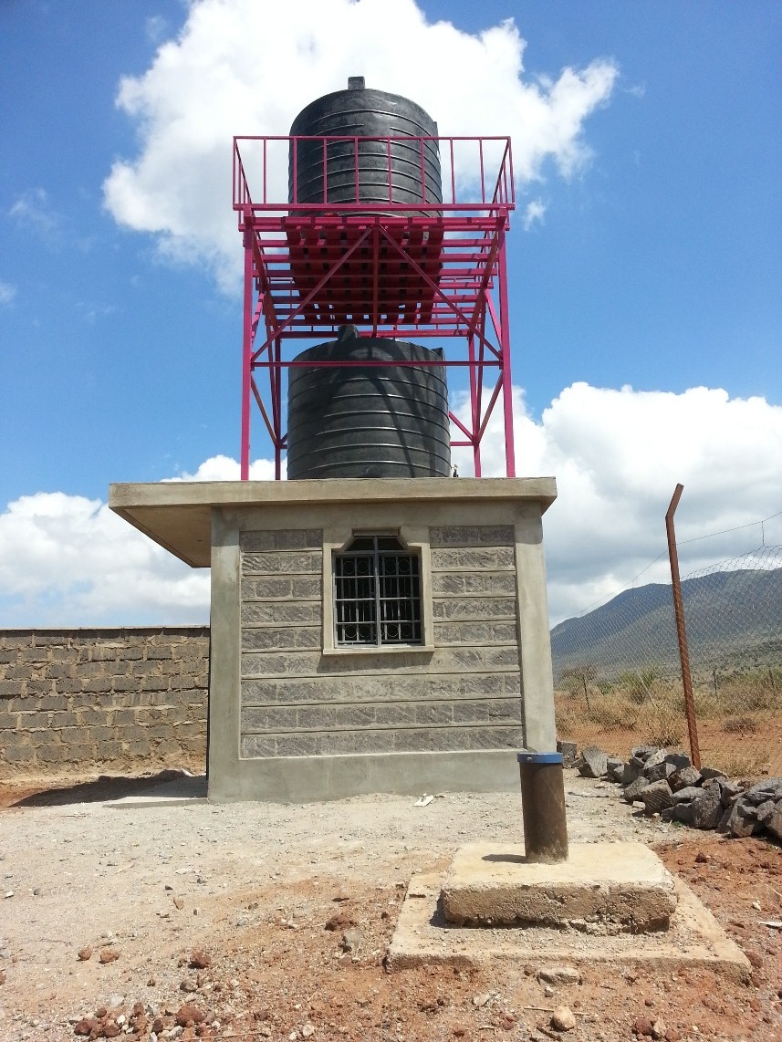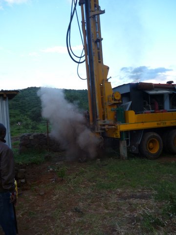 During drilling, the water layers tend to get blocked by clay and other debris from the drilling. For maximum water yield, the bore-hole must be developed. High pressure water and air are forced down the bore-hole to open up the pores. After development the bore-hole is given a 24hr test pump to pump out dirty water and to check what yield the bore-hole can supply. In our case, the bore-hole is able to supply 2,800L / hour. Finally, samples are taken for bacteria and chemical analysis. Our water is clean with a slightly elevated level of floride (1.55mg/L at our bore-hole verses a WHO recommendation of 1.5mg/L or a USA EPL safe limit of 4mg/L), but still deemed fine for drinking by the testing laboratory.
