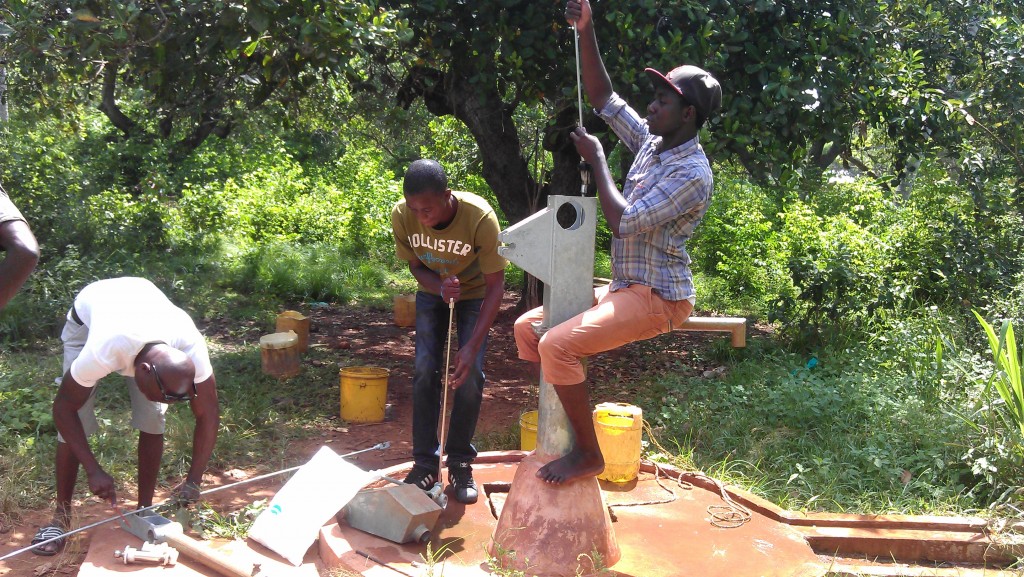 Repairing other charities' hand pumps.